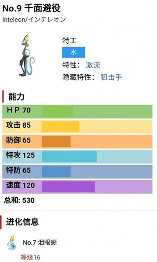 一段进化:[HP:64 攻击:66 防御:68 速度:50 特攻:81 特防:76][水系]