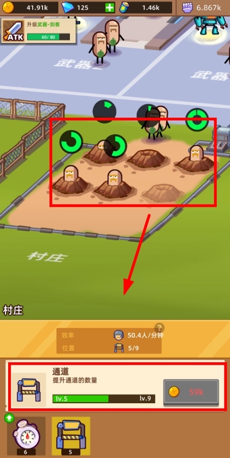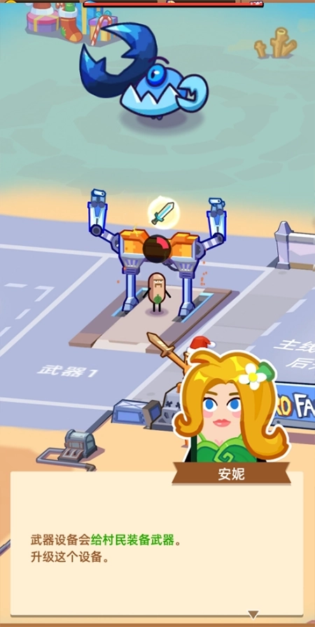 村民顺着路径自然聚集到工厂入口,路径的数量和通行效率影响着兵员产出的节奏。击败怪兽得到的金币,是拓宽路径、延长通行时间的关键资源。