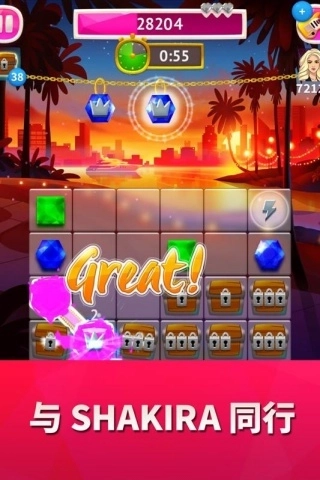 2.视听享受多种组合消除方式,炫目的光效和夏奇拉的热辣歌曲,为你带来视听盛宴。