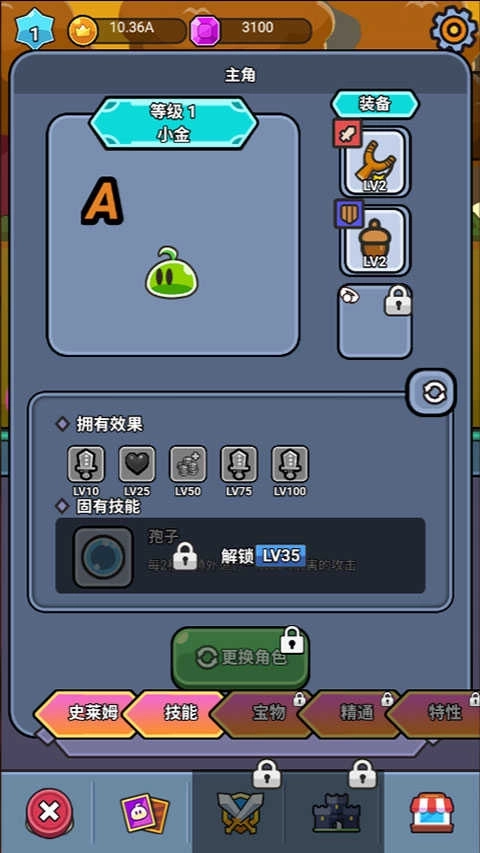 进入游戏后,能在“主角”界面直接调整史莱姆等级、更换装备、学习新技能,各项操作都直观易懂。