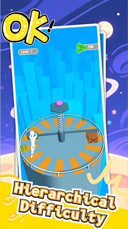 扭扭螺丝是一款超有意思的策略闯关游戏,主题是拧巨型螺丝。玩家通过点击屏幕,让主角像拉磨那样推动巨型螺丝转动,只要螺丝成功触底就算过关。而且玩家能升级角色各项属性,这样就能更出色地完成关卡任务啦。其玩法简单有趣,主题新颖,能让玩家尽情体验精彩的闯关挑战哟!