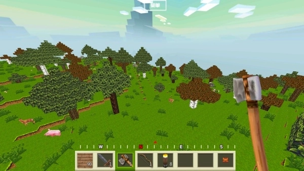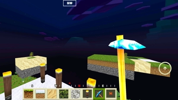 1.玩家需徒手或借助工具破坏(采集)空岛上的初始方块,像草块、泥土以及唯一的树木,以此获取基础材料。