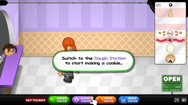 接下来就正式开启饼干制作流程啦,点击“doughstation”——这位顾客想要的是传统饼干,所以要选择装有传统面团的垃圾桶。