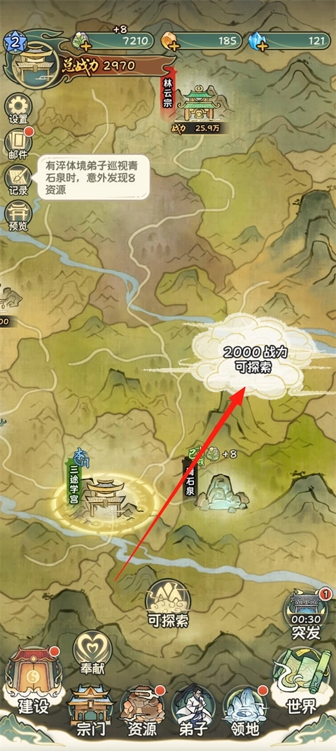 2、占领的区域越多,所能获取的灵石、药材等各类资源就越丰厚,这些资源可用于升级炼丹房、藏经阁等核心建筑。