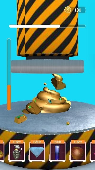 4、挑战任务机制:每一关都设置了独特的粉碎要求,比如一次性压碎五个苹果,或者确保物品的某个部件保持完整,完成这些任务就能获取双倍金币,用于解锁更高级的液压机配件。