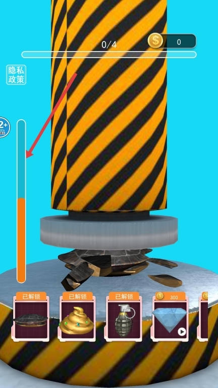 2、留意左侧的进度条,把控好压板下压的节奏来粉碎乌龟,同时要注意压力数值,防止出现操作失误。