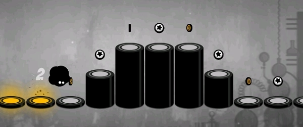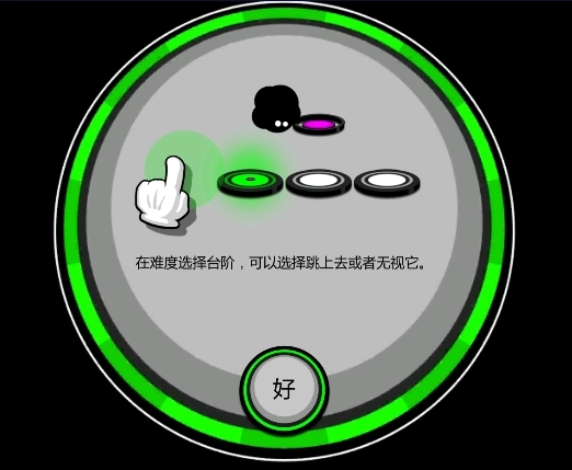 游戏刚开始时,会引导玩家完成五次完美着陆的任务。重点是要留意背景音乐里的鼓点,同时观察小墨球的下落路径。只有当小墨球的弹跳节奏和音乐的节拍完全吻合时,才是点击的最好时机。一定要让两者保持同步,不然的话就很难完成任务。