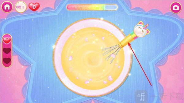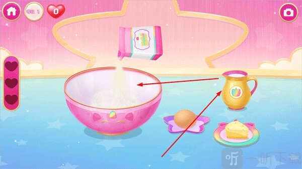 3. 点击独角兽客人想要品尝的蛋糕,进入其制作页面,随后拖动所需的制作原料放入碗中。