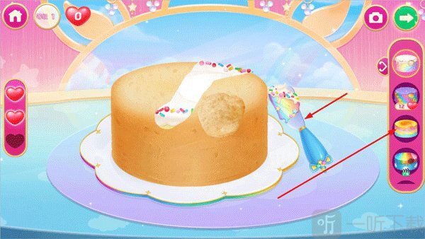 6. 选择右侧的蛋糕颜色,用工具涂抹蛋糕坯。