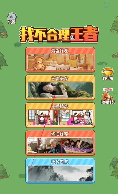 《找不合理王者》是一款充满欢乐趣味的游戏,这里有大量精心设计的图片场景,你可以通过观察画面中那些不合理、不合逻辑的细节来挖掘线索。游戏包含丰富多样的关卡,还贴心配备了提示功能,整体玩法体验十分出色。闲暇时玩上几局,既能放松大脑,又能享受解谜的乐趣,喜欢这类找不同游戏的玩家千万别错过!