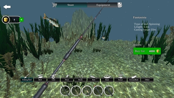 3、游戏商城里还可以更换各种鱼竿配件和鱼饵