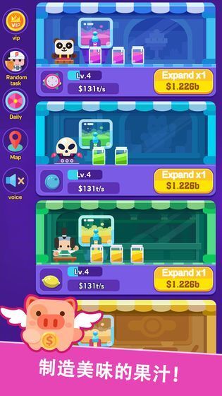 一款全新的模拟经营游戏上线啦!在游戏里,你得制作各式各样的果汁,解锁更多果汁配方。游戏玩法十分简单,只要熟悉配方,相信你肯定能做出美味的果汁。清爽的游戏界面,你可以不断升级自己的店铺,吸引更多顾客,还能按照自己的想法创造独特配方,把你的果汁店经营得越来越好!