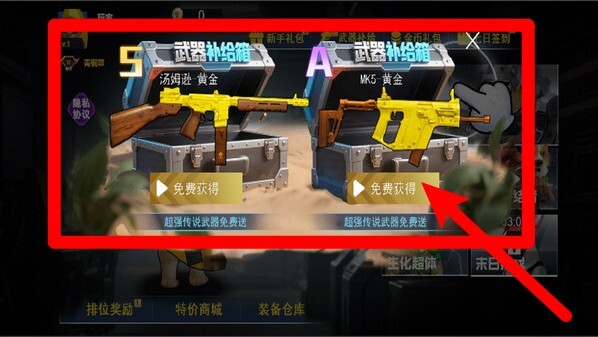 1. 商城武器:能够借助补给箱免费获得黄金级别的强力武器,构建专属于自己的顶级装备库,提升火力以应对各类激烈战斗。