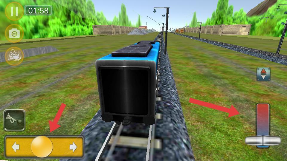 3、进入驾驶场景后,可通过左右箭头按钮来控制火车的行进方向,同时还有加速等操作按钮可供使用,从而操控火车在轨道上行驶。
