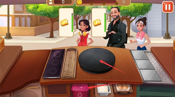 9、若煎饼制作进度超时,它就会变糊,这时候需要点击煎饼两次,然后将其丢进垃圾桶里。