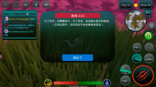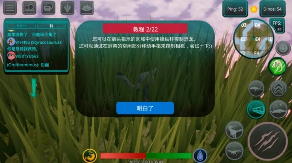 2、屏幕左侧配备了虚拟摇杆,主要用来操控恐龙的移动方向,操作起来流畅又直观,能让你轻松驾驭这只史前巨兽。