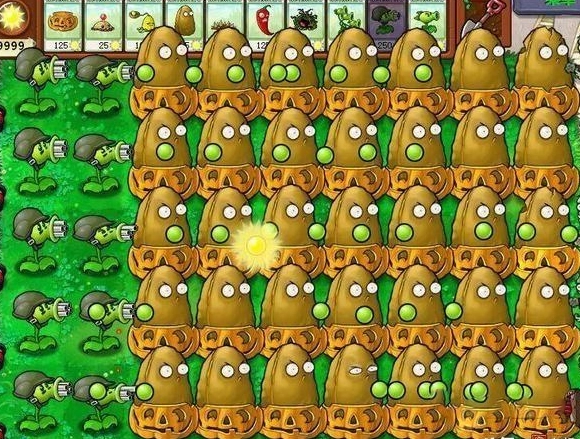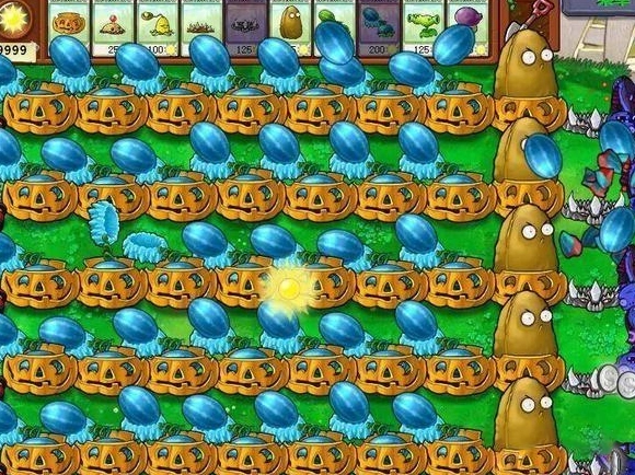 用高坚果和南瓜头搭建起前排的防御阵线,总共设置了七排来构成密集的防护屏障。除了巨人僵尸之外,大部分敌人都难以冲破这个阵型,能够切实保障大脑的安全,很适合用来应对那些僵尸推进强度高的关卡。
