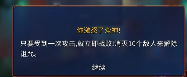诅咒伤害属高风险高回报机制:开启诅咒宝箱虽获稀有奖励,但将承受“一击必败”debuff,需在限定时间内清空当前区域敌人方可解除,本质是限时生存挑战。