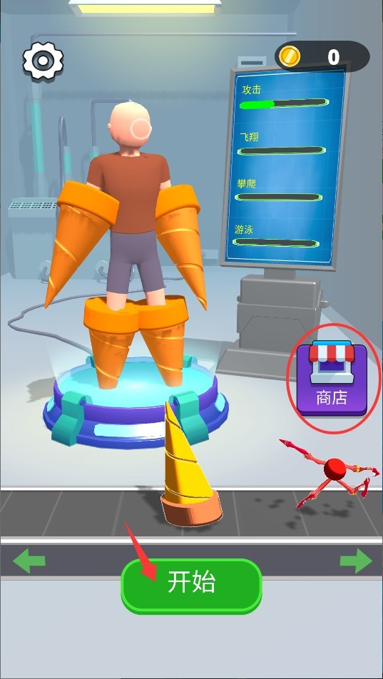 1、点击游戏界面的开始按钮即可进入游戏,商店内有多种机械部件可供挑选,你可以根据关卡的具体需求,搭配出合适的装备组合。