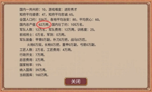 能看到,仅仅更换了一位地方知府,国家的总产值就增加了三万两。没错,这和我们了解的史实、观看的电视剧情节一致,由于朝廷对地方的管控力有限,地方知府的道德品质至关重要,会直接作用于国家的总产值,道德高尚的知府也更难滋生贪污腐败的风气。所以各位朋友们在调换知府的时候,务必挑选道德水平高的人来担任知府哦。