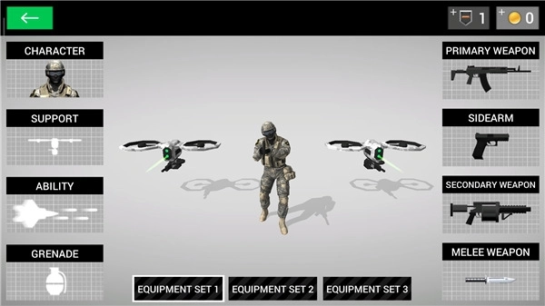 3、进入关卡后,我们有一次选择预设装备的机会,选择好之后,点击下方的RESPAWN按钮进入战斗。