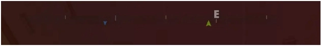9、屏幕上方显示的是指南针,图标越小意味着目标与自身的距离越远;其中▲表示玩家位于目标的水平下方,▼则表示玩家处于目标的水平上方。