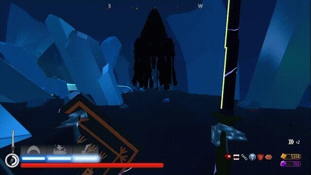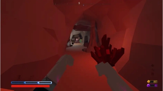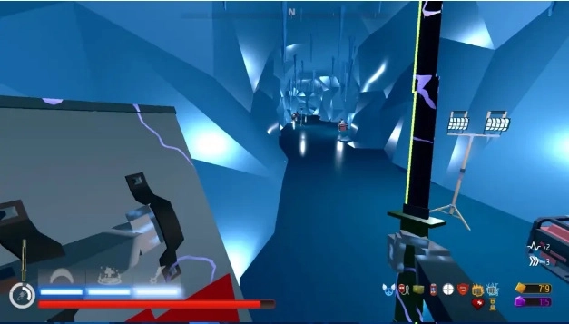 2、水晶洞穴内遍布着水晶锥体,整体呈现冷色调,穴道蜿蜒曲折,武器资源较为匮乏,部分怪物具备技能,对付起来有一定难度。