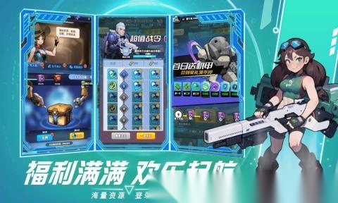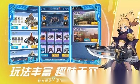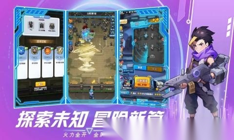 1. 采用卡通动漫画风构建未来科技世界,结合绚丽的射击弹幕特效,带来别具一格的战斗体验。