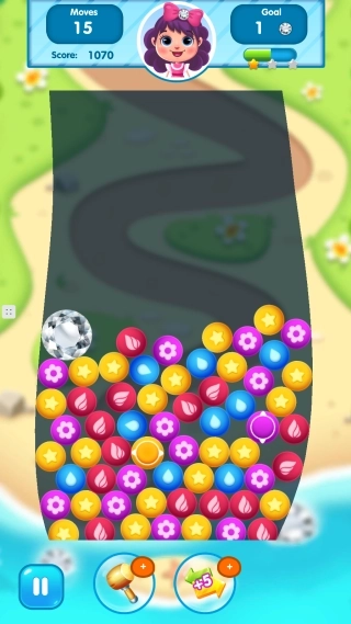 1.核心消除玩法提供直线和直角两种连线方式,当连续消除五个相同颜色的球时,会生成可清除一整行的爆弹球。