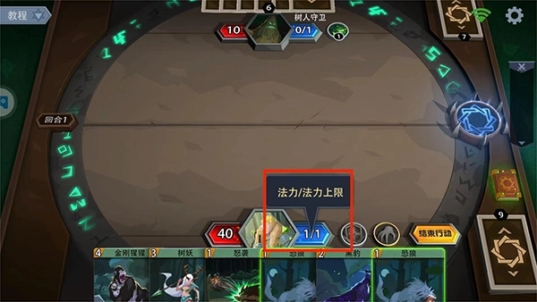 9、卡牌左上角的数字表示打出该卡牌所需的法力,蓝色框代表我们目前的法力上限值,当然这是可以增加的,