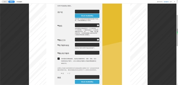 4、填写用户名、密码等账户相关信息,提交之后系统会把验证邮件发送到你填写的邮箱里,通过验证就能登录游戏了。