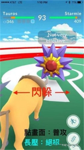2、道馆战不支持自动战斗,必须通过手动操作来进行:点击画面可触发普通攻击,长按屏幕能释放绝招,左右滑动能完成闪躲动作,上下滑动屏幕或者点击右下角的图标则可以切换当前上场的宝可梦。