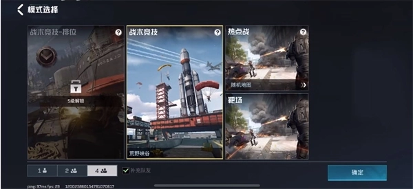 5、挑选你想参与的游戏模式(像团队死斗、大逃杀这类),点击确定就能开启对局。