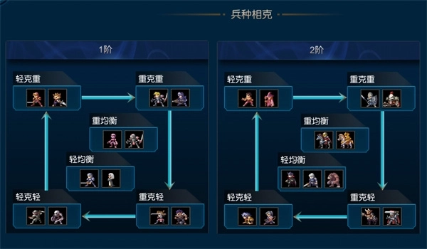 1、兵种不能提升,但英雄是可以升级的,比如英雄的等级,装备槽,技能等级都是可以提升的,比如英雄等级满级30级,30级英雄就会变成紫卡,而技能分三个阶段,每阶段5颗星,满级三阶5星,满级技能英雄会变成金卡,这都是非常关键的。
