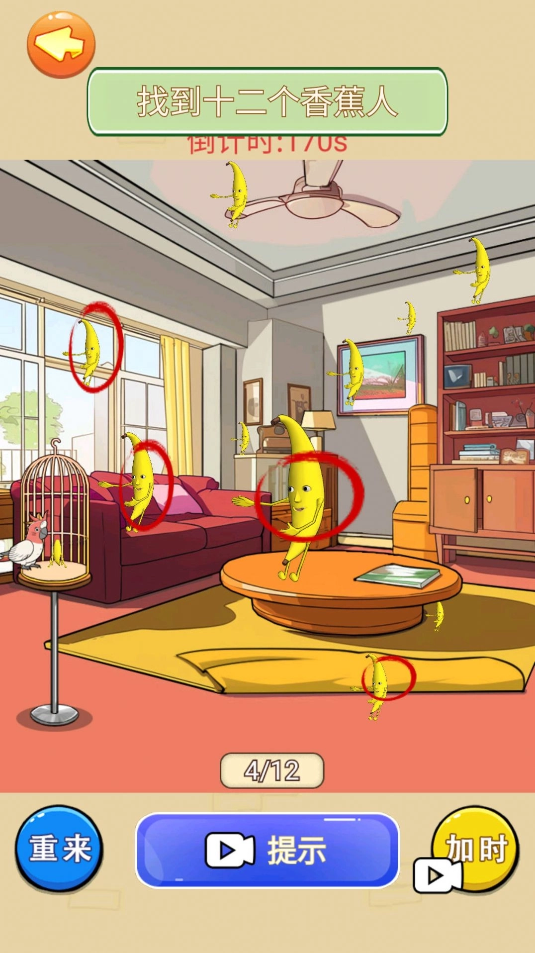 1、限制时间内找到所有香蕉人,考验眼力与速度。