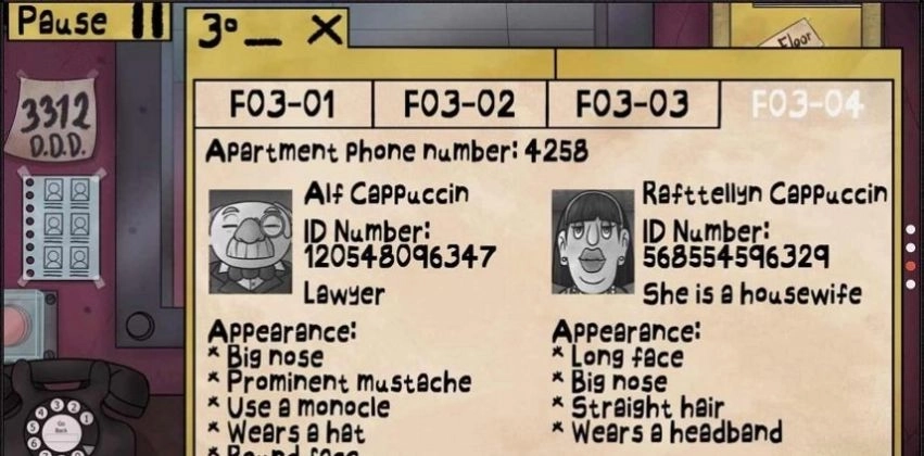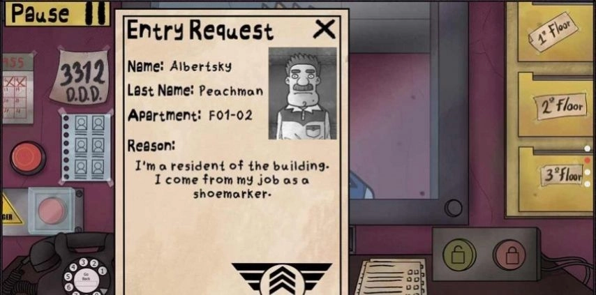 4、进入游戏后的界面如图所示,玩家需要依据邻居所出示的证件信息,对其中存在的伪人进行辨别。
