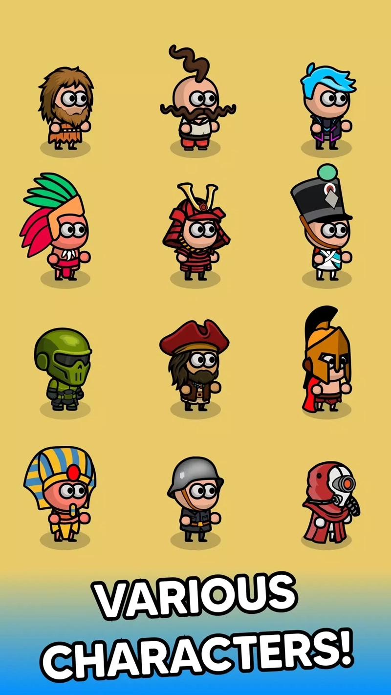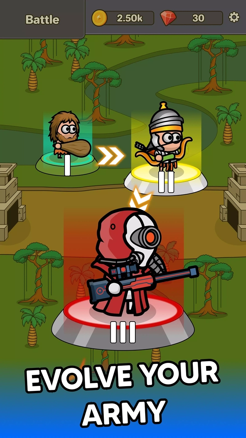 1.玩家将以石器时代的洞穴人为起点,一步步进化为古埃及的士兵、斯巴达勇士,最后迈入现代战争的时代。