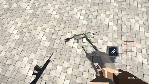1、第一步是找到一把枪,把准星对准这把武器,此时屏幕左侧会弹出拾取按钮,长按该按钮就能成功获取武器;