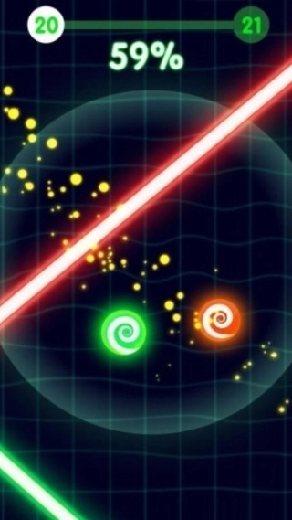 2、留意球球的旋转方式,避开激光的切割,坚持的时间越长,得到的奖励就越多。