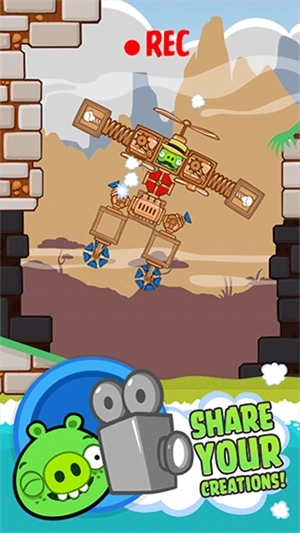 3、可自由组合的物理组件超过30种——无论是滑轮还是螺旋桨,弹簧或是涡轮,都能用来搭建出能滚动、能弹跳、能旋转、能悬停的复合载具,将小猪安全地送到蛋巢!