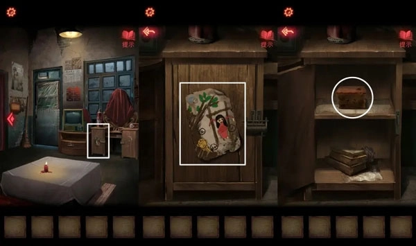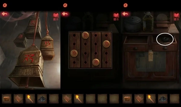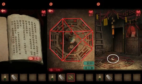 8、按照【反字日记】里的提示信息,设置五格凶兆机关的顺序,顺利打开锁具得到【钥匙】。用这把【钥匙】开启房门,进去后拿到【煤油灯】。