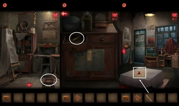 13、按照神龛经书上的记录,用【口红】涂抹坛子上的绳结让它变成红色,之后坛体会裂开,能在破碎的残骸里找到并拾取第二张【半张照片】。