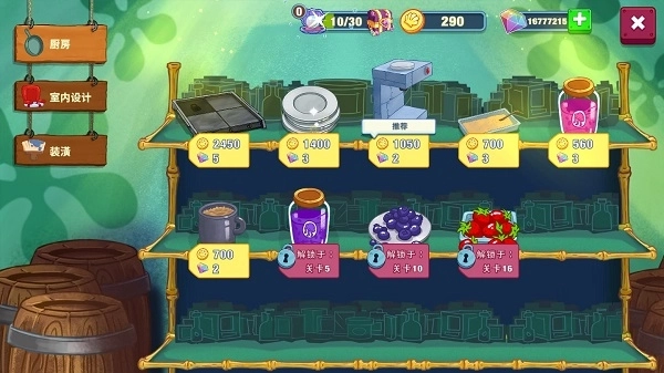 5、“便宜货市场”其实是你的战略补给核心!这里有着全游戏最有效的升级途径:顶级煎炉能让出餐速度提升300%;智能果冻分装机可自动匹配口味;声控清洁系统能减少停机时间……每一次设备升级,都在为你的餐厅口碑和现金流带来稳定的增长。