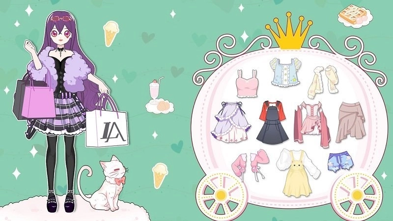 1、游戏里有着丰富的服装和饰品资源库,涵盖了连衣裙、高跟鞋、汉服等上百种时尚单品,玩家能够自由搭配出风格多样的造型。