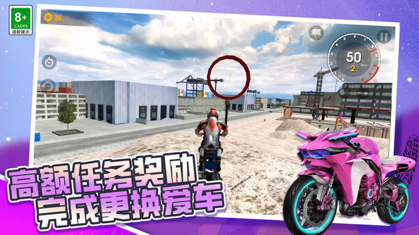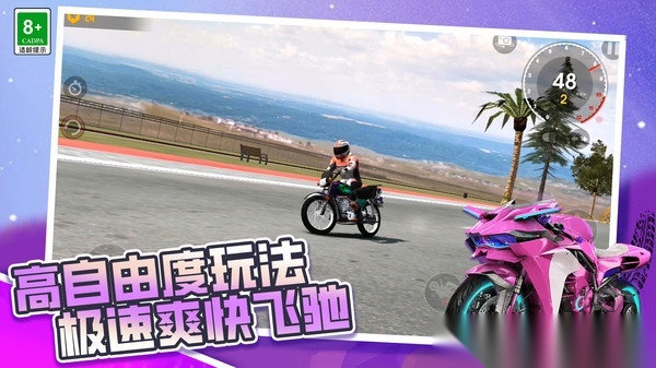 1、运用先进的物理引擎技术,高度复刻真实摩托的驾驶感受,尽享速度带来的激情体验。