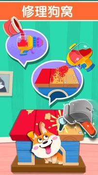 小狗的小房子屋顶破啦,快帮它把房顶补好,再涂上好看的油漆,小狗瞧见肯定超开心;把破墙纸清理干净,选一张粉粉的墙纸贴上去,整个家一下子就变得暖洋洋的好温馨!(快和宝宝一起动手,发挥创意吧)