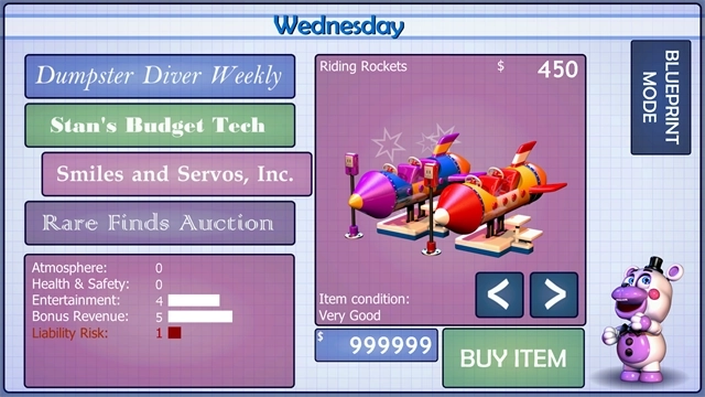 包含以下角色:残缺弹簧、熔融熊、破损baby、小左、大象、摇滚弗莱迪、摇滚邦尼、摇滚奇卡、摇滚霍斯、河马、青蛙、猪、普通熊、糖果机器人、音乐人、欢乐时光奇卡、墨西哥口音弗莱迪、安全傀儡,另外还有五个被称作“垃圾系列”的特殊角色。