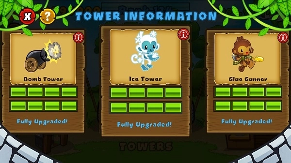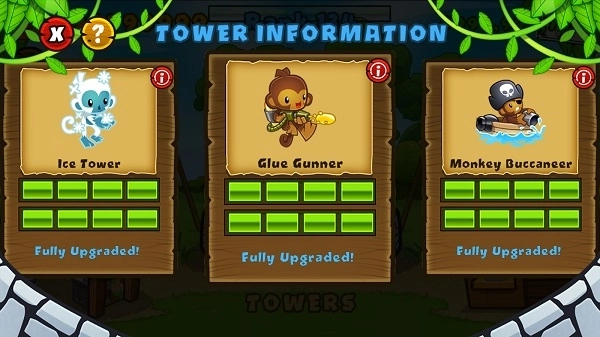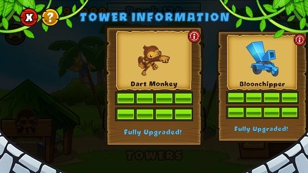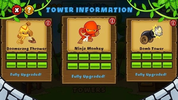 分别建造皇家飞行员、超人猴子、魔法猴子、猴子村以及香蕉工厂。其中,猴子村可以为防御塔提供各类补给,不过它的价格相对较高;而香蕉工厂则能在每一关定时产出具有价值的香蕉,其价格同样不菲。