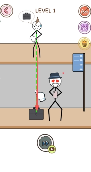 《看我速通关》是一款十分考验思维能力的休闲益智闯关游戏。在游戏中,玩家需要通过滑动屏幕与场景内的火柴人展开互动,各类道具均可点击操作。玩家要巧妙利用这些道具的特性来推进关卡,每种道具和武器的运用都蕴含着严谨的逻辑,只有经过仔细思考才能顺利通关。