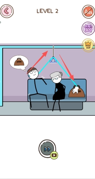 1、进入关卡后,点击火柴人的手臂并拖动,通过调整角度和力度,完成与场景物体的缠绕、抓取等基础互动操作。